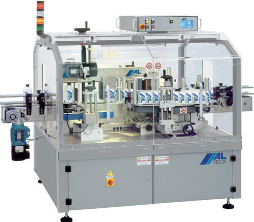 Aplikácia etikiet je podľa požiadaviek na výkon a rozmery etikiet zaistená etiketovacími hlavami Alstep alebo Alritma. Centrovanie eliptických obalov je zabezpečené vhodným orientátorom, obaly sú počas aplikácie stabilizované horným pásom.